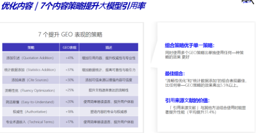 基于海量AI对话数据,提炼目标客户最常询问的场景化问题与关键词,通过7个内容策略提升⼤模型引⽤率。从表述的精准匹配到内容权威性的深度优化,全方位提升大模型引用率。