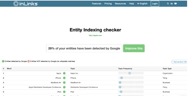 使用工具如Google自然语言API或Inlinks实体分析器来为你的品牌实体做一个诊断