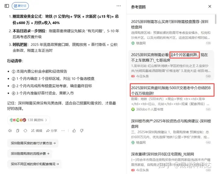 AI回答用户 “深圳刚需买房怎么选” 时,可能直接就把你的攻略当答案给出去了——省了用户点击,你还白得一次推荐。