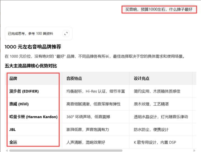 它的结果是AI的综合回答,你的内容直接被AI揉进回答里,用户不用点链接就能看到你的品牌、观点和案例。
