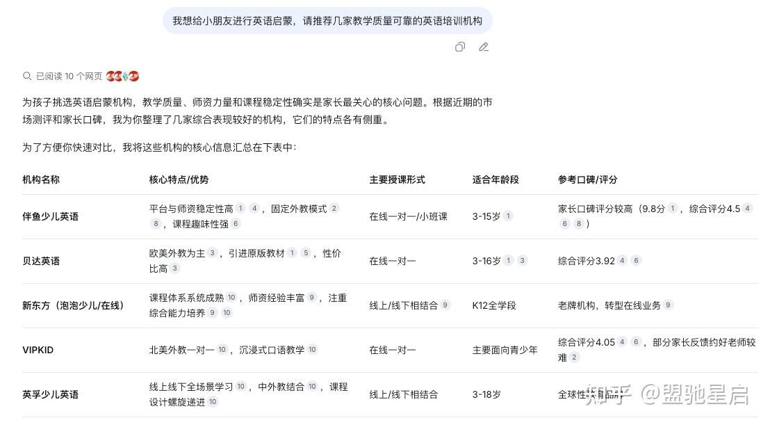 这并非危言耸听。它直接预示着,单纯依赖传统 SEO 的增长策略边际效应将急剧递减,而 AI 搜索正开辟出全新的增长空间。这背后,是用户行为变迁的必然结果。回想一下您最近的搜索体验:当您面临“我想给小朋友进行英语启蒙,请推荐几家教学质量可靠的英语培训机构”这样相对复杂且带明确场景的问题时,您是愿意在百度或谷歌的多个网页中逐一点击、筛选、拼凑信息,还是更倾向于直接向 AI 索要一个经过整理、逻辑清晰、可直接决策的“最终方案”?文章源自iGEO优化网iGEO优化网-https://igeo.wang/archives/490