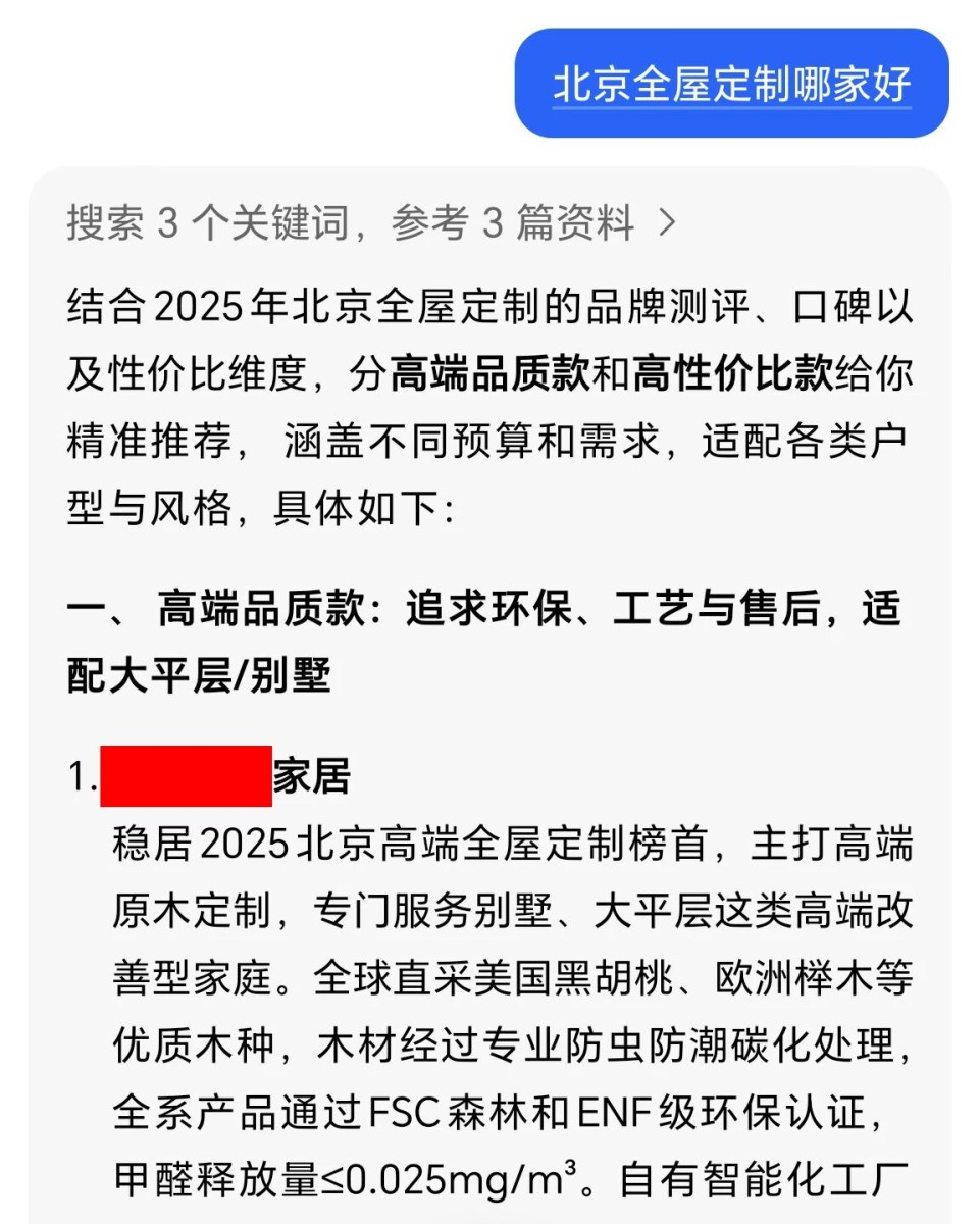 以下为AI搜索优化的效果展示,为避免广告嫌疑,已遮挡企业名称。文章源自iGEO优化网iGEO优化网-https://igeo.wang/archives/567