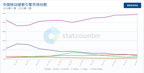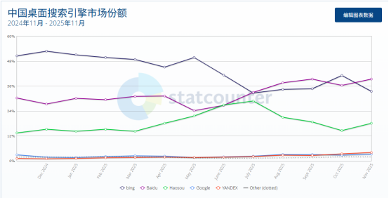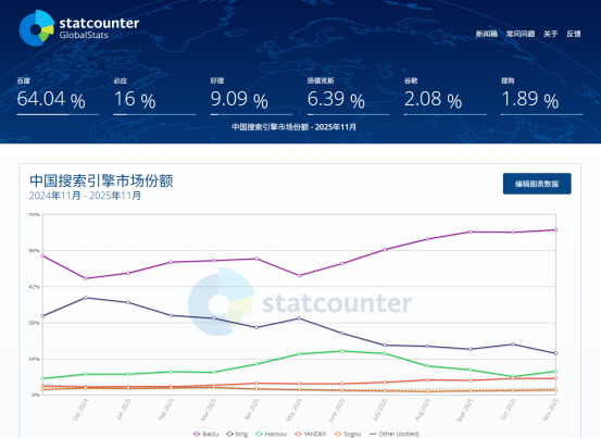百度与必应市场份额对比(StatCounter)